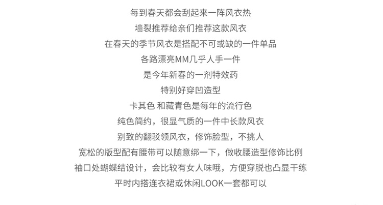 商品名称:秋装新款韩版卡其色风衣女中长款过膝百搭宽松休闲外套女春秋