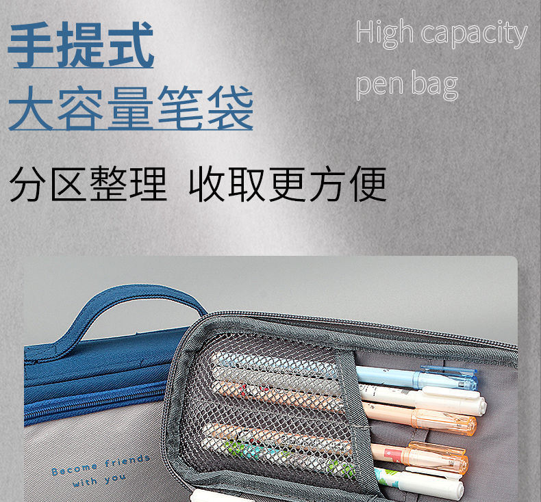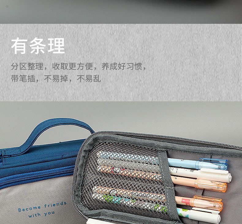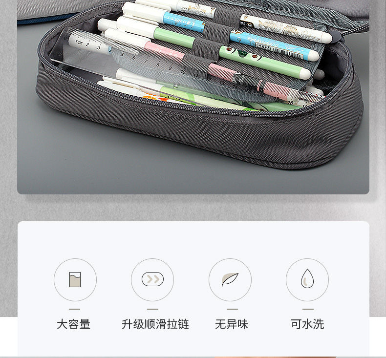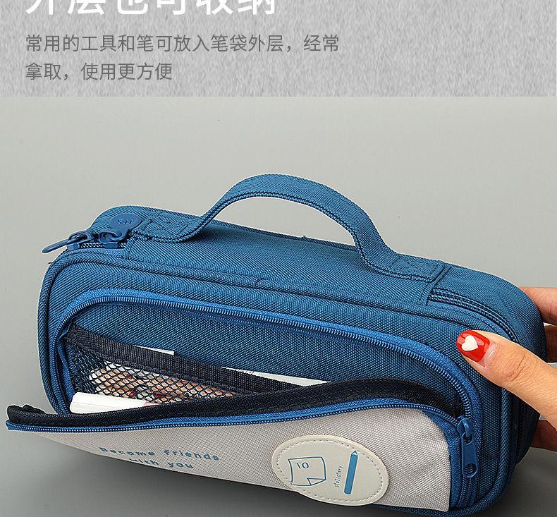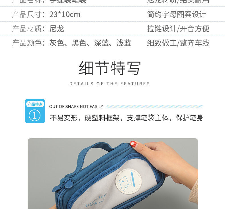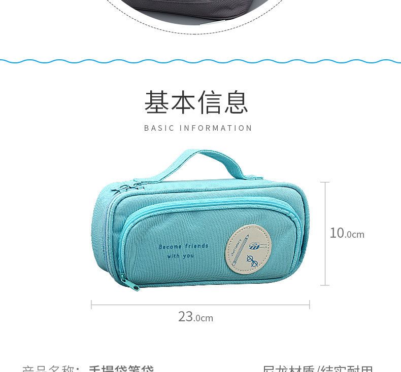 商品名称:笔袋手提式铅笔袋大容量多功能男生女生耐脏小学生初中文具盒帆布